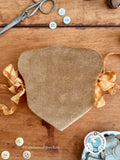 One of my favorite things about this project is the delightful textures you’ll enjoy while stitching and finishing it! Your finished needlebook features tarnished gold rayon ribbon ties, complemented by a soft, felted wool interior, and rich cotton velveteen on the back. It will make your heart sing!